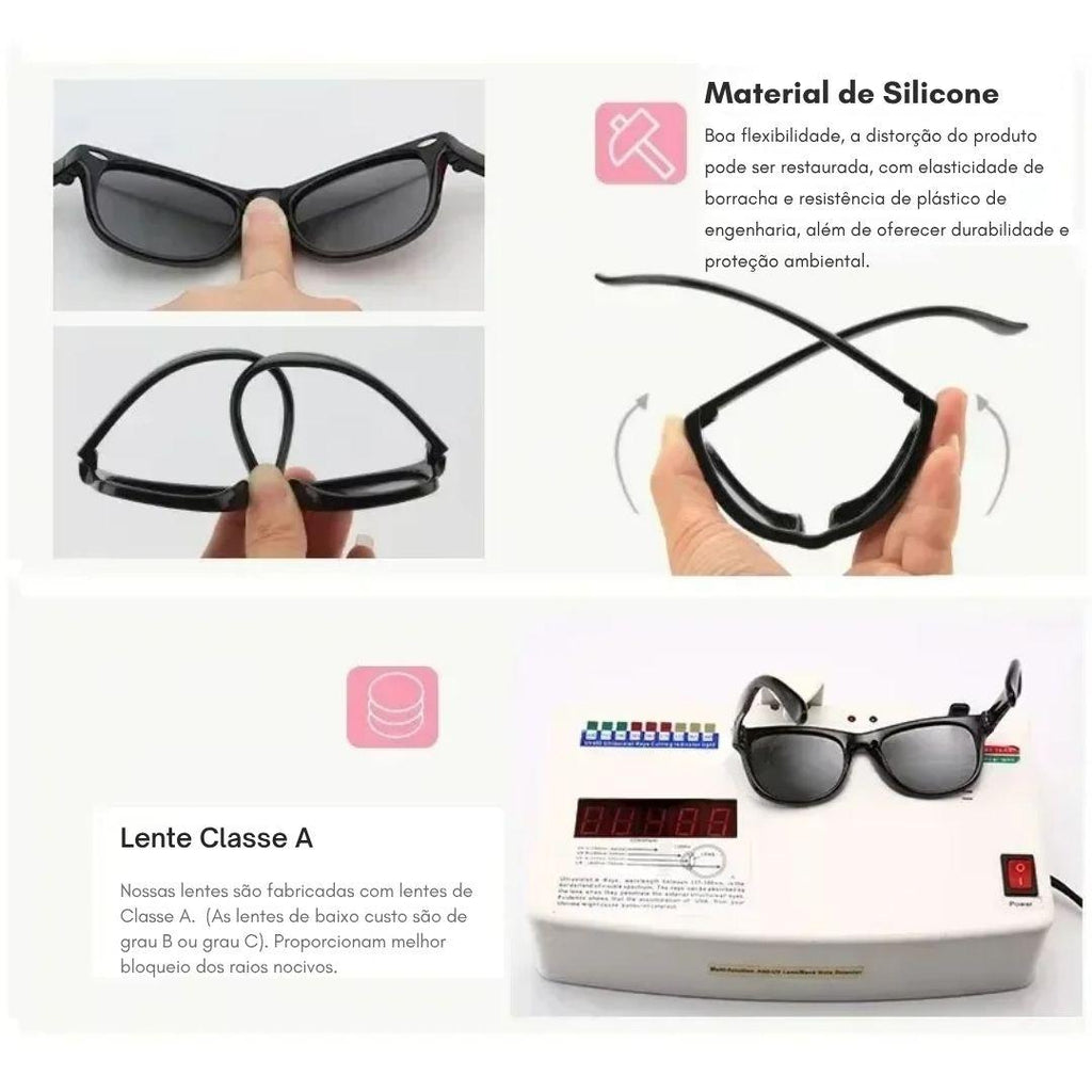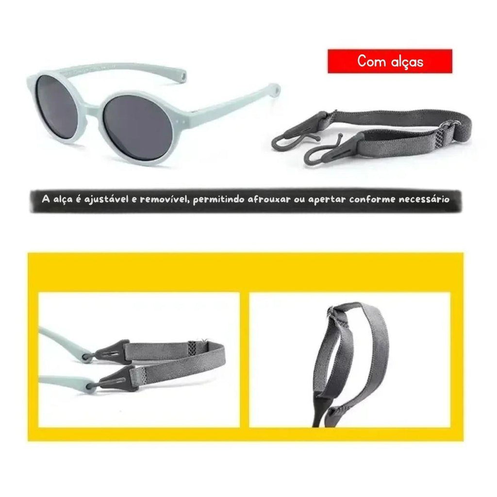 Os Óculos de Sol Polarizado com Alça para Bebês foram criados para garantir máxima proteção solar e conforto absoluto durante os passeios ao ar livre.